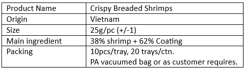 Product Name: Crispy Breaded Shrimps (Litopenaeus Vannamei)
